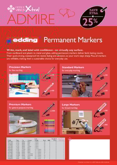 Your customers can sit back and admire our February Office VIBES® Xtra promotions. Love will most definitely be in the air when they take advantage of up to 25% Xtra savings on these cherished office supplies.